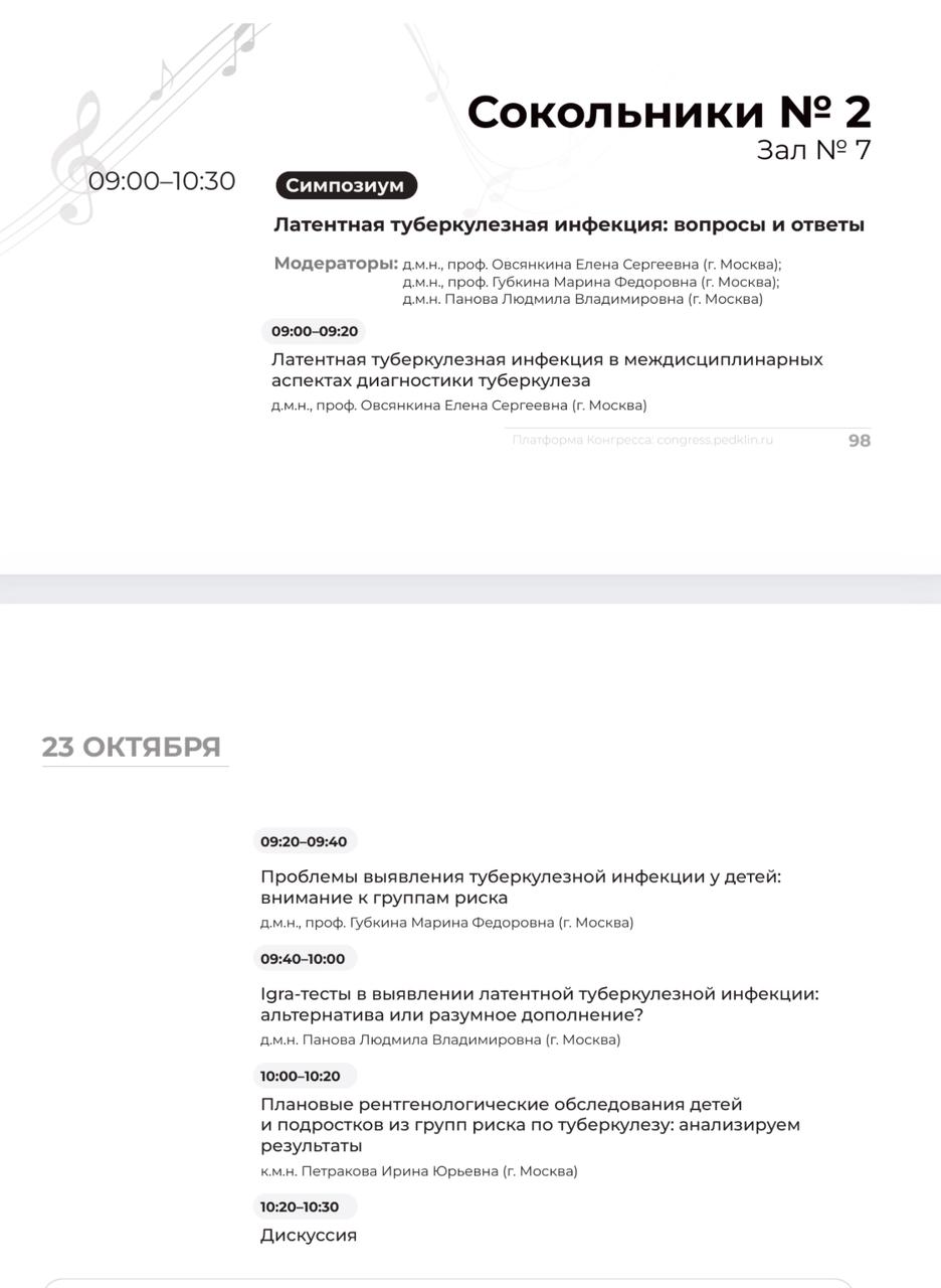г.н.с., д.м.н. Губкина М.Ф. «Проблемы выявления туберкулезной инфекции у детей: внимание к группам риска»;